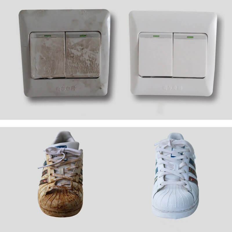 - LAAT JE SNEAKERS GLIMMEN. Yup, deze micro-scrubber actie verwijdert slijtplekken op witte tennisschoenen zonder het gebruik van chemicaliën. Dat betekent dat je weer van je schoenen kunt genieten zonder in zeepschuim te lopen.