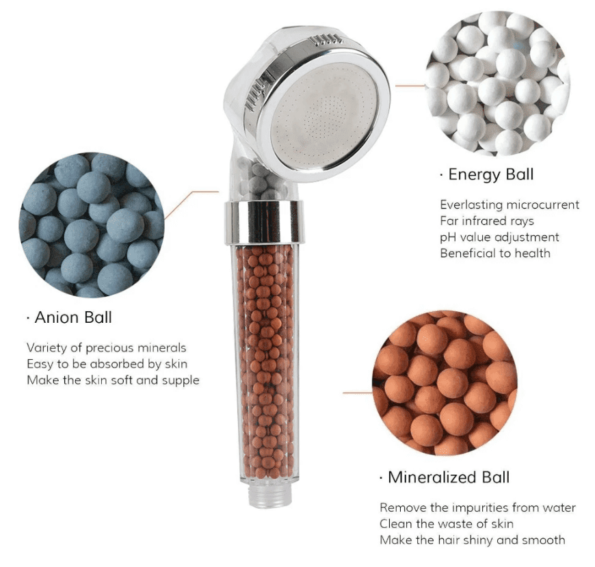 Afneembaar en gemakkelijk te reinigen - De douchekop is strak aangesloten en je hoeft je geen zorgen te maken over breken, vallen of lekken. Elk onderdeel is eenvoudig te demonteren voor een eenvoudige reiniging. Drie soorten mineraal ballen onttrekken chloor en andere giftige stoffen aan het water. Zuiver water maakt je haar en huid stralend en gezond.