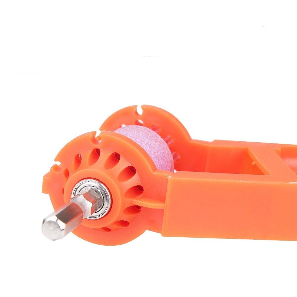 Sterk en duurzaam materiaal - Het is gemaakt van ABS kunststof van hoge kwaliteit en een roze korund slijpschijf. Deze biedt een hoge hardheid, roestvrij, solide en is volledig duurzaam. Het kan ijzeren boren zeer goed slijpen en is niet gemakkelijk te beschadigen.