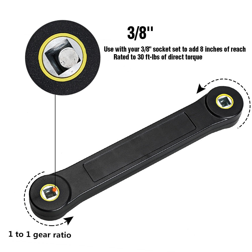De universele verlengsleutel brengt het maximumkoppel van de sleutel over op moeren en bouten en houdt je handen en knokkels uit de buurt van hete voorwerpen of krappe ruimtes waardoor de moer of bout gemakkelijk te verwijderen is. Het kettingaangedreven mechanisme van de ratelverlenger verhoogt de soepelheid tijdens het gebruik en verhoogt de duurzaamheid van de sleutel. Je krijgt de klus sneller geklaard dankzij dit fantastisch voorwerp!